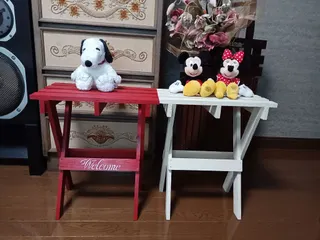 ミニテーブル茜色&バニラ 昨日、午前にバニラのミニテーブル、午後に茜色のミニテーブルを作って来ました🎵 午後は和ちゃんさんとご一緒させて頂き楽しかったです😊和ちゃんさんの投稿で、赤のミニテーブルにはSNOOPYちゃんがピッタリだと知り、私も真似させてもらいました!可愛い❤️先ほど頑張ってステンシルしてみました😆少し