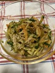 千切りピリ辛ザーサイを消費するためにきゅうりと和えて夕食の一品になりました。 ピリッと辛味があり美味しく出来ました😋