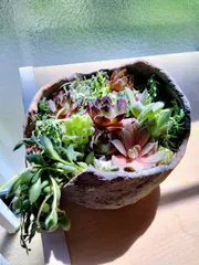かとちさん グリーンWSでの多肉寄せ植えの作品です。 多肉初めてお花咲きました。