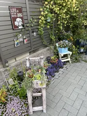 アレンジアワード2022「チェア型ミディアムガーデンスタンド」 4/11に投稿した「チェア型ミディアムガーデンスタンド」に多肉寄せ植え完了💕【4/11の投稿作品】 多肉ちゃん達は我が家で冬越ししたコ達と増えたコ✨みんな頑張ったね~🥰小さなお家は発泡スチロールにモルタル塗ってペイントした物で以前、モルタル鉢作った時に入れようと思ったのに入れると手狭になる