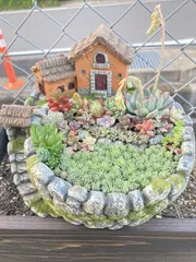 4/11に投稿した「チェア型ミディアムガーデンスタンド」に多肉寄せ植え完了💕【4/11の投稿作品】 多肉ちゃん達は我が家で冬越ししたコ達と増えたコ✨みんな頑張ったね~🥰小さなお家は発泡スチロールにモルタル塗ってペイントした物で以前、モルタル鉢作った時に入れようと思ったのに入れると手狭になる