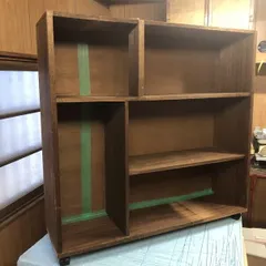 書棚をさらに改造して雑貨入れに ペーパータオル、ウェットティッシュ、コロコロのテープ、メモ用紙……などなど入れてます。普段はカーテンを閉じているので見えません。元々は3メートル近い高さの書棚を分割して、今回さらに分割。側板の余分な長さで底板を作りました。※前の記事https://diy-square.cainz.com/annou