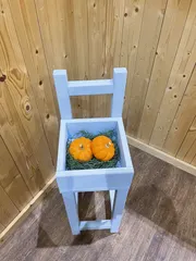 チェア型ミディアムガーデンスタンド 水色も案外綺麗な色に染まりカボチャが映えます。楽しかったです。