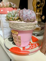 可愛い鉢にも寄せ植えを☺️アデリアのお隣さんです。仲良く育つと嬉しいです。