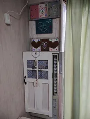 ミニドアオブジェの窓エアコンカバー(再投稿) 窓エアコンにミニドアオブジェの作品を付けて窓エアコンカバーにしました✨