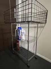 NEW コインランドリーの便利グッズ ■作品内容:コインランドリーで以前よりこれすごく便利と思い、ついに実現しました。室内干しの我が家畳んでキャスターついてて、なんていっても高さがばっちりなんです! かごの側面はメッシュパネルの細いラインを使用! つなぎはケーブル束ねるプラスチック製のものを使用。☝️カインズさんのこ