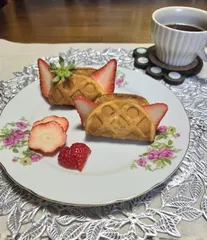 NEW ワッフルで🍓にゃんこアレンジ😺 ■作品内容 スーパーなどで販売している、スイーツ(ワッフル)を猫のお顔風にしてみました😺🍓 ■作品のこだわりポイント そのままでも美味しい、ワッフルですが、旬で美味しい🍓を猫のお耳風にして、お手軽で楽しいアレンジスイーツにしてみました🎶 (/-\*) (#^.^#)