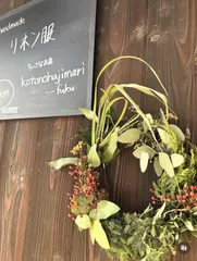 ■作品内容ワークショップで作ったリーススタンドに、横タイプのクリスマスリースを作って飾りました。■工夫ポイントリースが映えるように白い塗料にしました。リースは自宅の剪定した巨峰の枝と蔓を使って、自然な枝の形を生かして土台を作り、育てているエリカ・ウインターファイアーと柊、コニファーを飾りつけました。