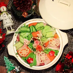 今年は家族でおうちクリスマス🎄いつものお鍋をかわいく飾り付けて、クリスマス気分を楽しみました🍲