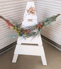 リーススタンドにクリスマスリースを飾って🎄⭐️ ■作品内容ワークショップで作ったリーススタンドに、横タイプのクリスマスリースを作って飾りました。■工夫ポイントリースが映えるように白い塗料にしました。リースは自宅の剪定した巨峰の枝と蔓を使って、自然な枝の形を生かして土台を作り、育てているエリカ・ウインターファイアーと柊、コニファーを飾りつけました。