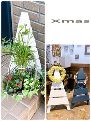 🎄リーススタンド 友達とワークショップに参加しました♪色は撥水のホワイトとアイアンブルーです。まだリースを作っていないのでクリスマス寄せ植えとリーススタンドのコラボに♪毎回楽しく参加しています^_^