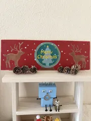 Xmasステンシルボードです 下の写真の水色の方は、少し前に作って投稿済です。同じトナカイのステンシルシートを使って、構図も似てますが、色使いで雰囲気がかなり違いますよね。前に作ったハロウィンなんちゃってガーランドの裏側を利用したので、板に穴があいてます( *´艸`)白でステンシルした後に茶色を重ねてステンシルしました。茶色のト