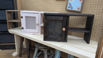 カインズdiyワークショップへ🪚-『コレクションストレージシェルフ』☺️オシャレー-順調に仕上げてたのに…最後扉をつける時に微妙に扉が入らないというハプニング…⚠️ヤバッ(・・;)真ん中の板を少しズレてつけてしまったのが原因😅ヤッチマッタ…-他にももろもろとやってしまったところを大丈夫ー!と先生が