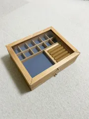 HL.8 桧で作るジュエリーBOX ストアオリジナルのWSに参加しました 久しぶりの上級者WS💦 本体はステイン塗料のオーク色 1段目のシートは2色から選べたので青色にしました 途中から集中力がなくなり😅ミス連発でしたが、スタッフさんに助けてもらい完成🫣💦 上級者WSなので