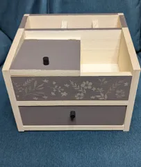 NEW HL.6COSME BOX ストアオリジナルのコスメBOXをにアレンジしてみました😊 BOXは無塗装に見えますが、ステインホワイト塗料を塗りました🤍引き出し部分は持ち込み塗料です🤎 アレンジは帰宅後に頑張ました💪 蓋と枠の所にも引き出しと同じ塗料を塗ってます🎶 ステンシルも敢えてあまり目