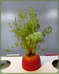 人参の葉🥕リボベジpart2-① ■育てた野菜11月13日から始めた人参の葉のリボベジが大きくなり収穫したので、2回目のリボベジをする事にしました。■エピソード(チャレンジしたきっかけなど)1回目の人参の葉が、生でも柔らかでえぐ味もなく美味しく頂けたので、カット後の成長も観察したく、チャレンジする事にしました。🌿光合成の為に葉付きを