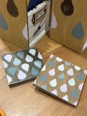 木材×アクリルでドロップコースター💧 画像ではほとんど違いが分かりませんが、一応、色違いで作りました😅⬅️左🩵ブルー系 右💚グリーン系➡️塗料はてっきり、B&Bと同じと思ってたら、アクリルガッシュだと伺って、思い描いてたイメージ通りに出来なかったのが、ちょっと残念でした😥その時点で私の中では失敗なので、またリベンジしたいと思い
