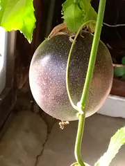 初めてのパッションフルーツ 栽培 春に小さな苗木をいただき超🔰初心者なんですが小さなのも含めて12 個結実して見事に育ちました 嬉しいです 全部食せたら嬉しいんですが....まだ戸外、そろそろ冬越しの準備しなくちゃいけないです,