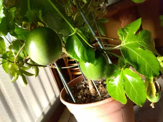 鉢でこんなに立派に育つんですね! パッションフルーツ、艶々しててとても綺麗😍