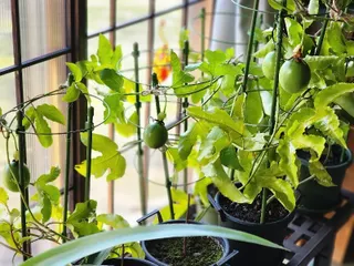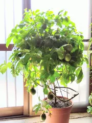NEW 冬支度 こんばんは昨年は家に入れるのが遅くなったパッションフルーツ…今年は寒くなる前に家の中に鉢上げ(鉢から鉢だけど)して入れることができました😊明日から寒くなるようなのでギリギリセーフです😅水挿しして増やした株(2株)も立派になってくれたので、こちらをメインに来年は育てようと思います🎶夏が終わって実をつけ