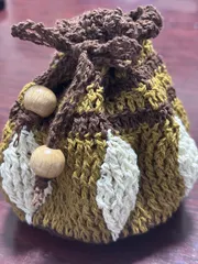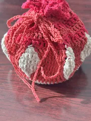 巾着No.4の2 茶系の色違いをあまり糸で同じように3色で赤系2色と白編みました😉二個目惑わされず編めたので調子に乗って💪夜中の2時までドラマを見ながらサクサク編みました😊いつもなら目の数間違えては解きを繰り返すんですが静かで集中出来て思いの外サクサク🤣👍