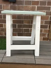 2個目のミシン椅子、迷いに迷って超撥水ダスティグリーンとエクステリアカラーズのピュアホワイトに。序盤から上手くいかず、塗装までの工程では今日初めて参加される方より遅くなってしまいました💦結果、例の如く脚がガタガタする😱可愛く出来たし、脚はなんかしら誤魔化して使おうと思います😅工房のB&b作品