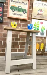 ミシン椅子 (LV-30) Lv.♪♪2個目にチャレンジ! 2個目のミシン椅子、迷いに迷って超撥水ダスティグリーンとエクステリアカラーズのピュアホワイトに。序盤から上手くいかず、塗装までの工程では今日初めて参加される方より遅くなってしまいました💦結果、例の如く脚がガタガタする😱可愛く出来たし、脚はなんかしら誤魔化して使おうと思います😅工房のB&b作品