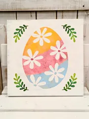B&Bミニサインボード【花柄の卵】 今回のB&Bミニサインボードは【花柄の卵】😊💕そう!イースター🌸🐣🎶見本デザインは花柄1色でしたが、『イースター』を表現したくて、卵の形に合わせ型紙を作り、色を3色🧡🩷🩵にしました。だけど🤔3色がポップになり過ぎ😂何か違う?😅何か違う?💦とブツブツ言う始末🤣🤣「いっそ冒険しようかな?」とつぶやくと周