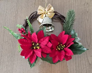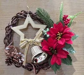 ■作品内容リーススタンド&クリスマスリース ■工夫ポイント手作りリースをWSで作ったリーススタンドにかけて飾りました。