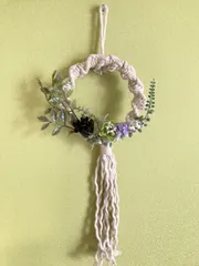 NEW マクラメリース😊 マクラメリースのワークショップに参加しました😊正4だけを黙々と編めば出来上がるので、悩まず作れました🙌季節によって飾る小物を替えようと思います🎃🎄🎍