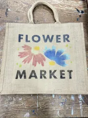 NEW ジュートバッグ(フラワーマーケット『 ■作品内容久しぶりのB&Bワークショップで、ジュートバッグを作りました。エキネセアのお花のデザインです。■こだわりポイント塗料をつけ過ぎない様にして裏に塗料が滲んでうつらないように気をつけました。花びらは少しずつ色を変えてステンシルしました。