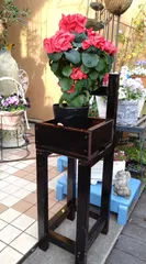 NEW チェア型ガーデンスタンド カインズのワークショップで作成。一度ペンキを塗った後、自宅でさらにアンティーク風にしたくて、マホガニーのオイルステインを追加しました。