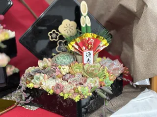 お正月多肉の寄せ植え♪ 多肉寄せ植えWS行ってきました。奥の緑の大きい子は七福神だそうです。縁起物ですね😆