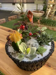 市主催の 多肉寄せ植えに行ってきました♪ ピンクベリー 白星 アロエ緋牡丹 ハオルチア多肉今、サボテン🌵が人気なのよ〜〜😃と、急遽サボテンも仲間入りしました♪なんか、お正月🎍っぽいですね^ ^と、お隣の方とお話しました😊楽しかったです♪