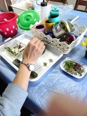 みずたま🏠寄せ植え教室😊 昨日🏠寄せ植え教室2名様✨先月作ったリメイク1号鉢にチマチマ寄せ❣️https://diy-square.cainz.com/announcements/b1to89pzv86akn8kネルソルに鹿沼土細粒を混ぜた土にチマチマ頑張っておられました😊お二人は何度も寄せ植えされているので基本はすっ飛ばし