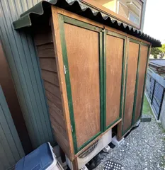 室外機カバーを作る時にそのまま倉庫にしてやれと倉庫にしたもの。 ドアつける前はこんな感じ! 普段はキャンプ用品入れてます^_^ 作ってる際中に、エアコンに何かあった時に業者の人困るなと気づき、一応ずらせる様にしてるんですが、やってしまったなと思ったDIYでも