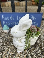 NEW 多肉寄せ植え ■作品内容うさぎの置物に植えましたうさぎさんが背負ってるカゴに植えたら可愛い🩷と■工夫ポイント多肉は🏠にある物を使って小さい物を選んで入れました多肉を植えるとうさぎさんがもっと可愛く🩷なりました😄※以下多肉ハック部門のみ入力■材料■工程