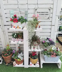 ガーデンシェルフ以前は秋の寄せ植えでハロウィンの飾り付けをしていましたが、冬の寄せ植えに少しずつ入れ替えて、クリスマスバージョンにしています💚🤍♥️