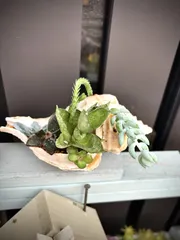 NEW 貝殻に寄せ植え ■作品内容つぶ貝貝殻の寄せ植え■工夫ポイントつぶ貝の実を取り出す穴にも寄せ植えしてみました🤭※以下多肉ハック部門のみ入力■材料クラッスラ・ムスコーサシナモンハオルチア星美人ジャイアントラビット ■工程