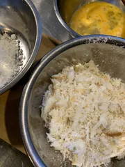 手作りパン粉 パン粉が無かったので、冷凍食パンで代用。いつも食べているより、サクサクして美味しいと思いました。荒目だったからですかね…また作ってみたいと思いました。お弁当にも🍱