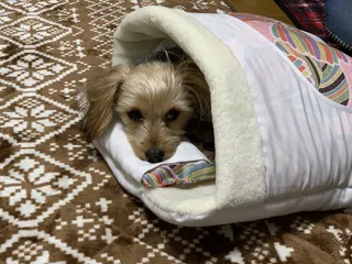 オールインワン?おふとんセット! ■作品内容 敷布団掛け布団枕の3点全部くっついたセット■作品のこだわりポイント昔ながらのシーツと和柄の布団柄がレトロ穴に潜りたいダックス用お布団です