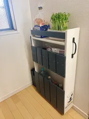 NEW コレクションストレージシェルフ 木津川店WSに娘と行って来ました♪色々な工程があり とても楽しく作る事が出来ました。色もお揃いの白色🤍にしました。家に持ち帰り 壁を外し色違いの壁紙を貼る事にしました。貼った後で縦 横 向きを親子で間違ってしまって 横向きのりんご🍎柄になってしまいました〜(笑)やり直す事も出来ましたが まぁ こんな