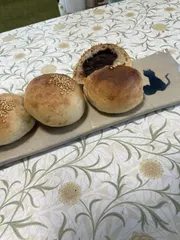 NEW Cooking Funで作ったこしあんで、あんぱん^ ^ 昨日、Cooking Funで作った こしあんで、あんぱん作りましたパン生地作りも復習です♪中のあんが、出てしまったりしましたが、頑張りました😊 猫ちゃん、お皿も、作ったものです^ ^