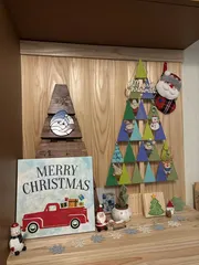 ■作品内容玄関にマイコーナー設置(WSで作ったお気に入りを飾る大好きな癒しのスペース) ■工夫ポイント端材を使って簡単ツリー🌲を作ってみた※以下カインズクリスマス部門のみ入力随分前にマイストア工房で飾りつけに使用されていたガーランド(フラグ)残りが端材として売り出されていたので、すかさず購