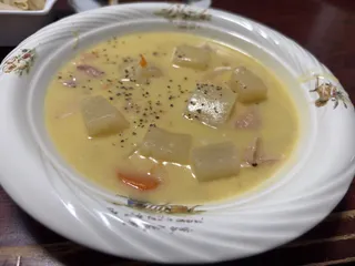 コークリームシチュー ジャガイモが高い!玉ねぎも高い😱大根が安い🤣のでジャガイモ抜き。玉ねぎは外せないので😅鶏もも肉でクレアおばさんコンクリームシチューのルーを使いました。大分黄色で甘くて美味しいかったです。シャトルシェフで夜仕込みました😌