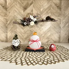 NEW 小枝でお正月飾り ■作品内容 公園で拾ってきた枝に100均のドライフラワーや花材をくっつけたプチプラのお正月飾りです。(奥側) ■工夫ポイント 松ぼっくりも子供と一緒に拾ったもので、自分でペイントしました。初めはしめ縄で作ろうと思っていましたが、ちょうどいいサイズの枝を見つけて思いたちま