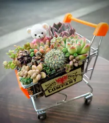NEW ミニショッピングカートに寄植え ■作品内容100均で見つけたミニサイズのショッピングカートに寄植えしました■工夫ポイントカートの雰囲気を壊さずカートの隙間から土がこぼれないように水切りネットを使いました 土が見えすぎないように木製のプレートを取り付けてみました ■材料100均で見つけたミニカート100円じゃなか