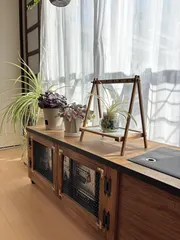 窓際に緑 CDMモニター当選で頂いたプランターが置けるベンチLに植物🪴を飾ってみました😊
