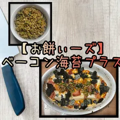 NEW 【シラスと大根茎&蕪の葉のお雑魚ふりかけアレンジ②お餅ーズグラタン😋⬜️🧀✨】 オリジナルセルフアレンジ①これも一回ふりかけ作っちゃえば流用楽チンレシピっちゅ〜こってぇ〜🤣👍🌊‼️💨✨■材料&作り方〈材料〉オリジナルふりかけ・ベーコン・餅・蕩けるチーズ・海苔✨〈調味料〉無いっ🤣🙌‼️💨✨まぁ〜何か水で濡らした餅を耐熱皿に敷いて、その上に蕩けるチーズ・ふりかけ・キッチン鋏で適当に