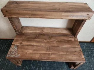 フラワースタンド2段 今年初のWS。フラワースタンド2段を作ってきました✨ガタツキがありちょっとお直しをしたりしましたが何とか出来ました。お初の色ウォルナットで塗装🤎今日は乾きを待つ間コーヒーをいただくことが出来ました☕️一緒の方と色々とお話をしながら楽しいひと時を過ごしました🎶写真コーナーができておりとっても素敵に写真